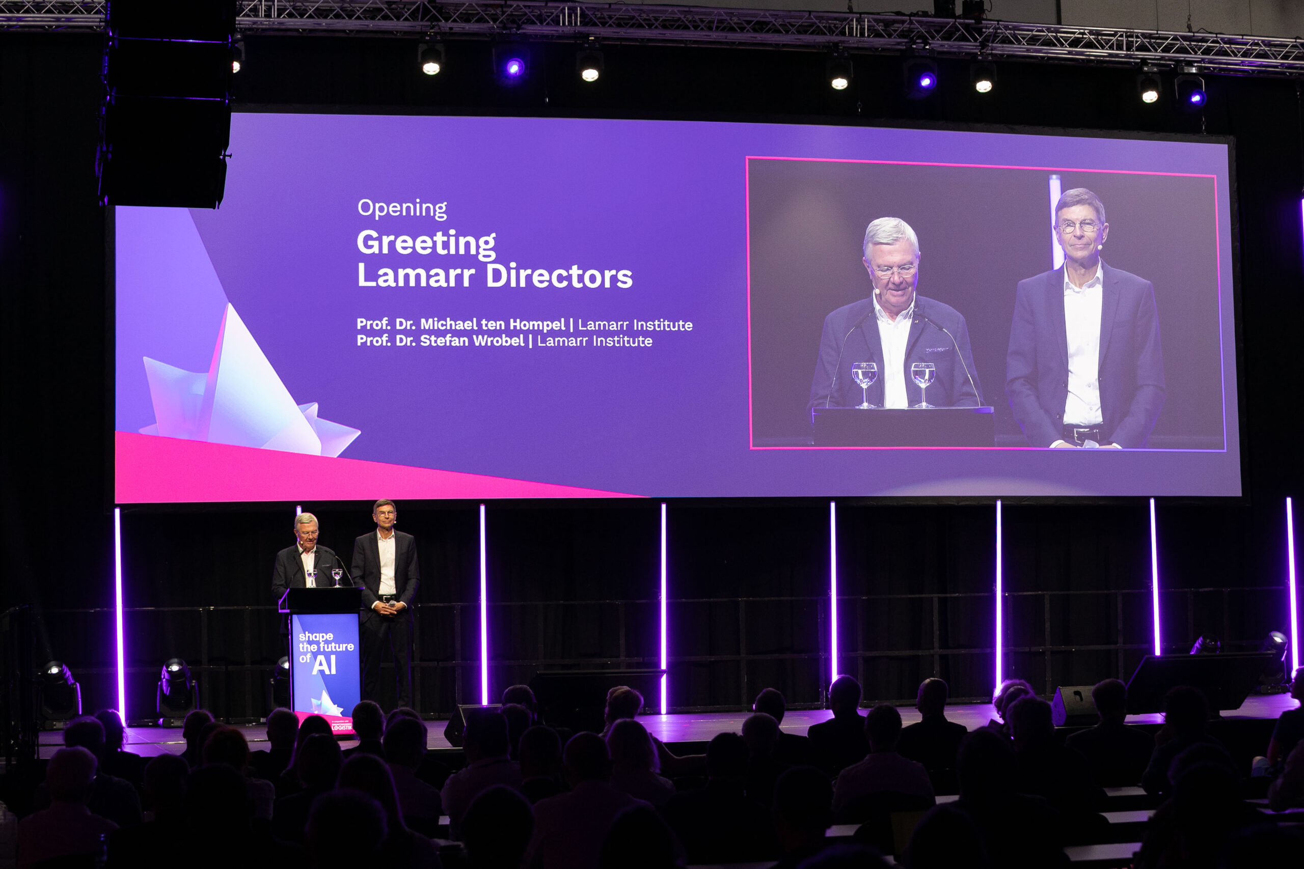 Experience an inspiring day that begins with the presentation of the Lamarr Award, followed by keynote speeches and panel discussions with renowned speakers from politics, science and business in the large auditorium. The lectures and panel discussions form the ideal basis for subsequent networking and further discussions on the status and strategic options of AI in Germany. Take part in stimulating discussions that will shape the future landscape of Artificial Intelligence and network with industry leaders. Finally, bring this exciting day to a close in the illuminating setting of Phoenix des Lumiéres after the Digital Logistics Awards ceremony.